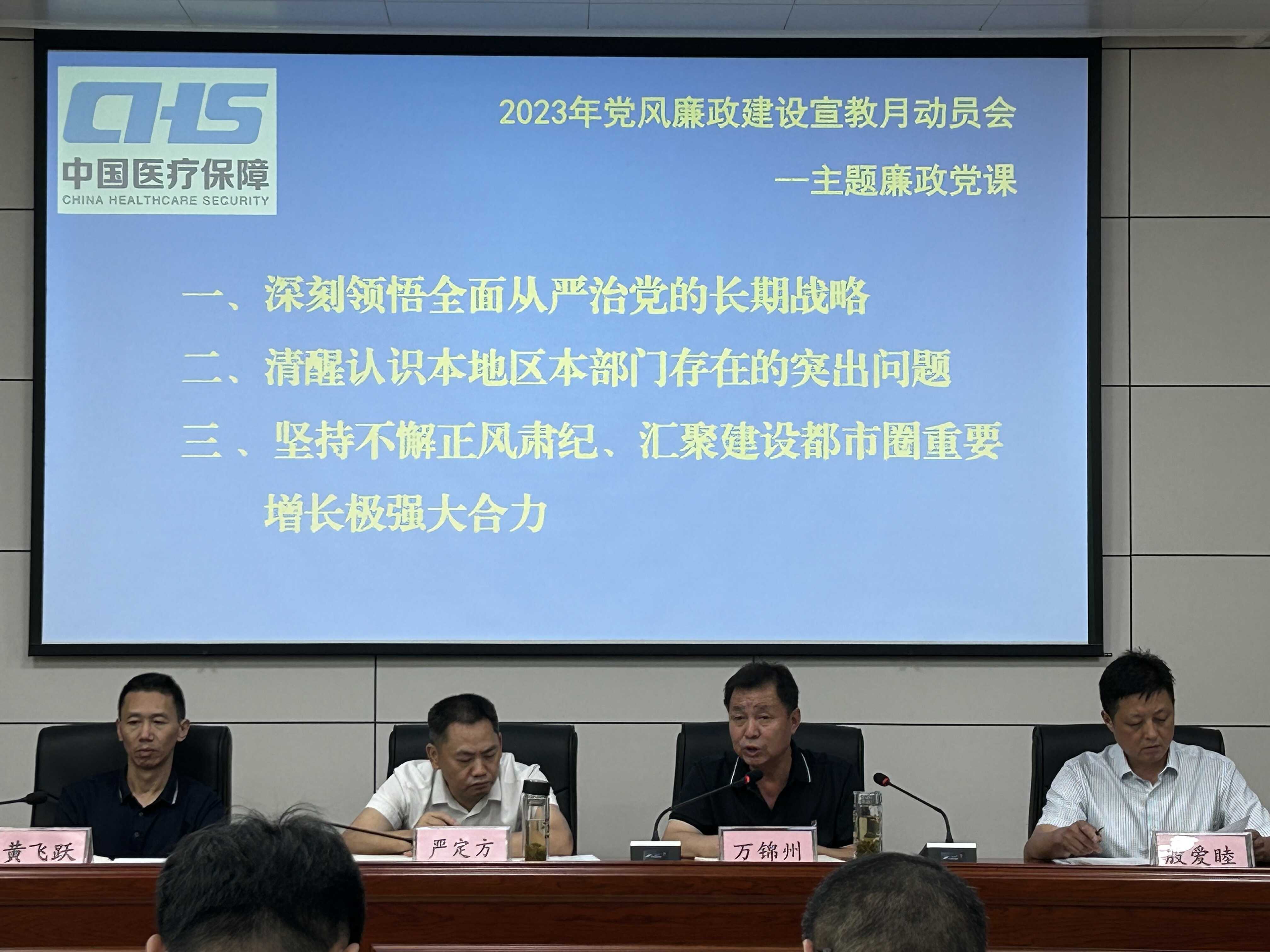 会议学习传达了全省、全市领导干部警示教育大会精神,对全局党风廉政建设宣教月活动进行了安排部署。市医保局党组书记万锦州《以永葆自我革命精神,为打造都市圈重要增长极提供坚强保证》为主题讲授廉政党课。