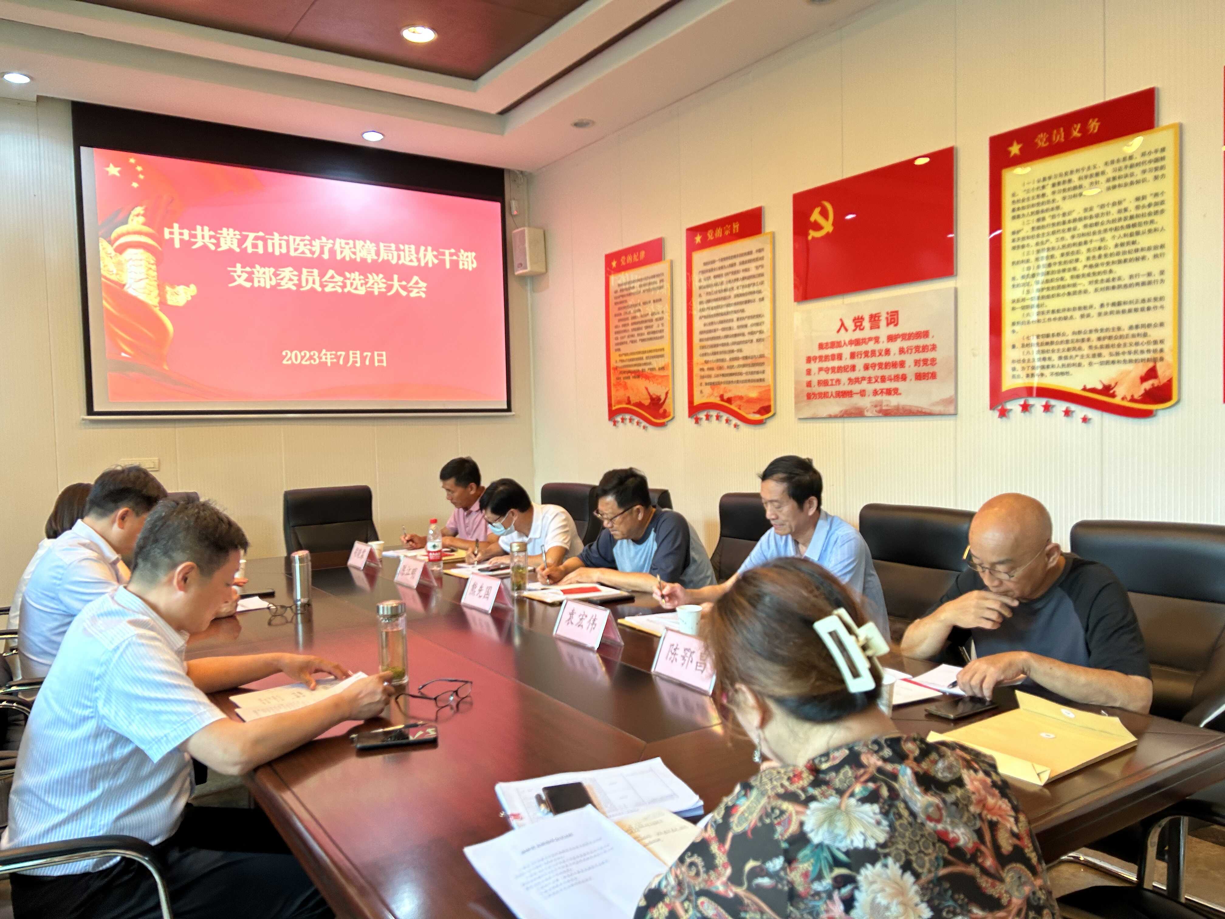 会议严格按照《中国共产党章程》、《中国共产党支部工作条例(试行)》规定及大会选举程序进行。会议宣读了市医保局机关党委《关于中共黄石市医疗保障局退休干部支部委员会选举工作的批复》,讨论通过了《中共黄石市医疗保障局退休党支部委员会选举办法(草案)》。会议以无记名投票方式、差额选举产生了退休干部党支部第一届支委委员。随后,召开退休干部党支部委员会第一次会议,等额选举产生了党支部书记,并进行了委员分工。