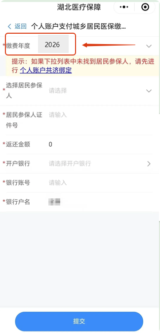 4.申请通过后,居民参保人2026年度已缴纳的居民医保费用,将返还至填写的指定银行账户。
