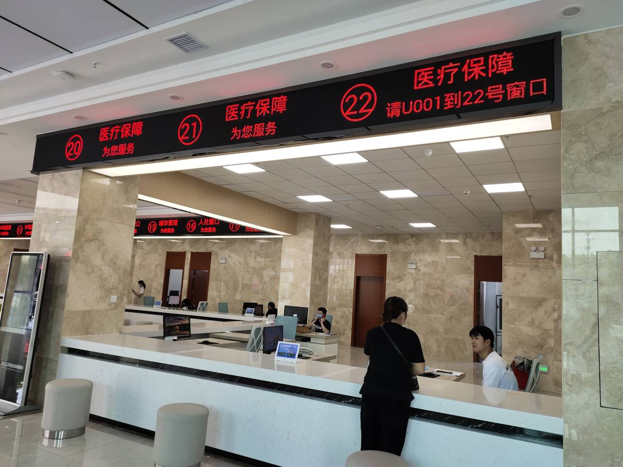 新办公区共有办公面积200平方米,停车位45个。 一楼大厅设有3个医保经办业务窗口,分别是20号、21号、22号,都是综合业务窗口,一站式办理,不让群众多跑路。按照国家医保局制定规范,下陆区医保经办中心执行6项制度,一是首问负责制度;二是一次性告知制度;三是容缺受理制度;四是限时办结制度;五是同岗替代制度;六是责任追究制度。认真贯彻执行服务口号“中国医保,一生守护”!