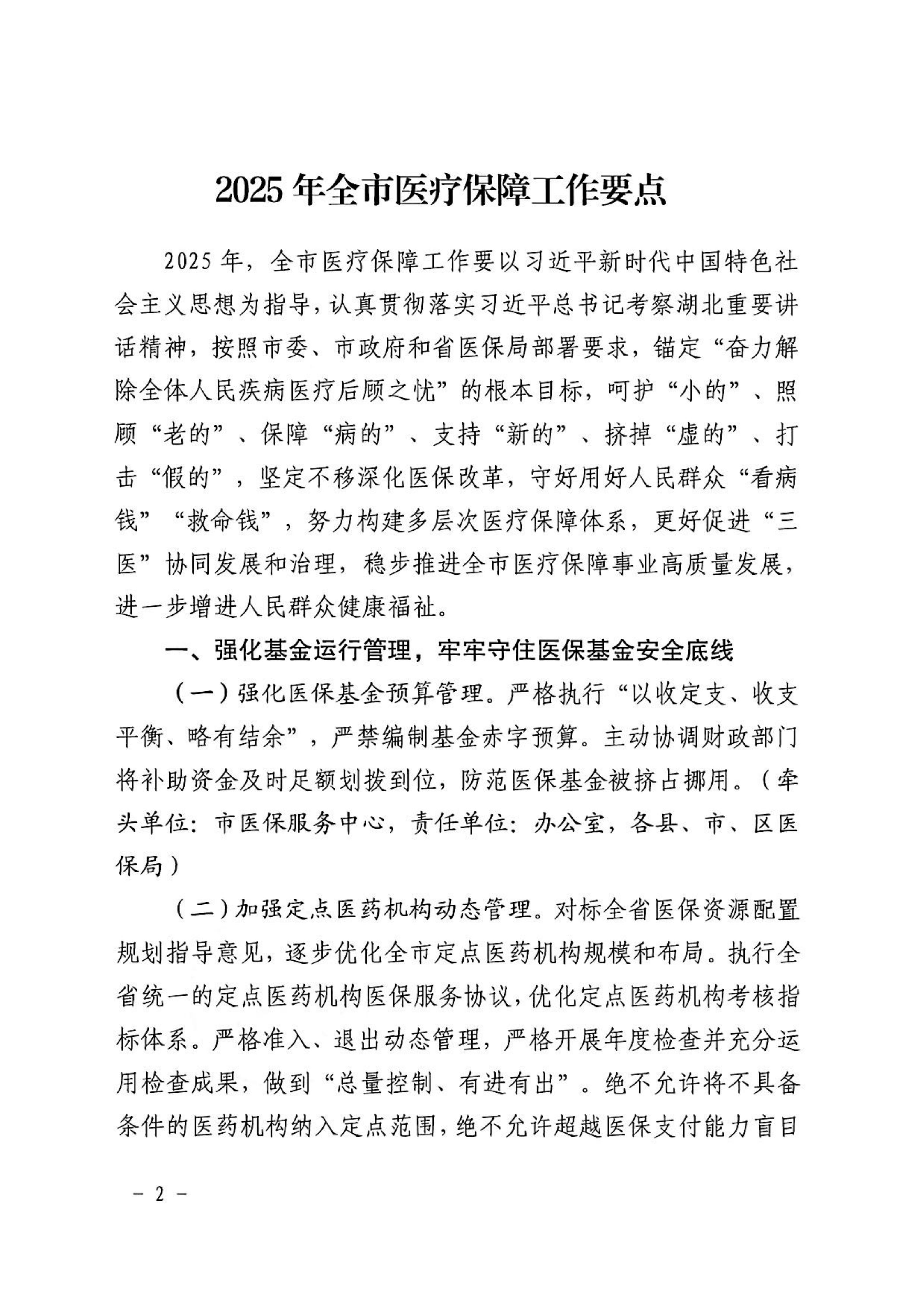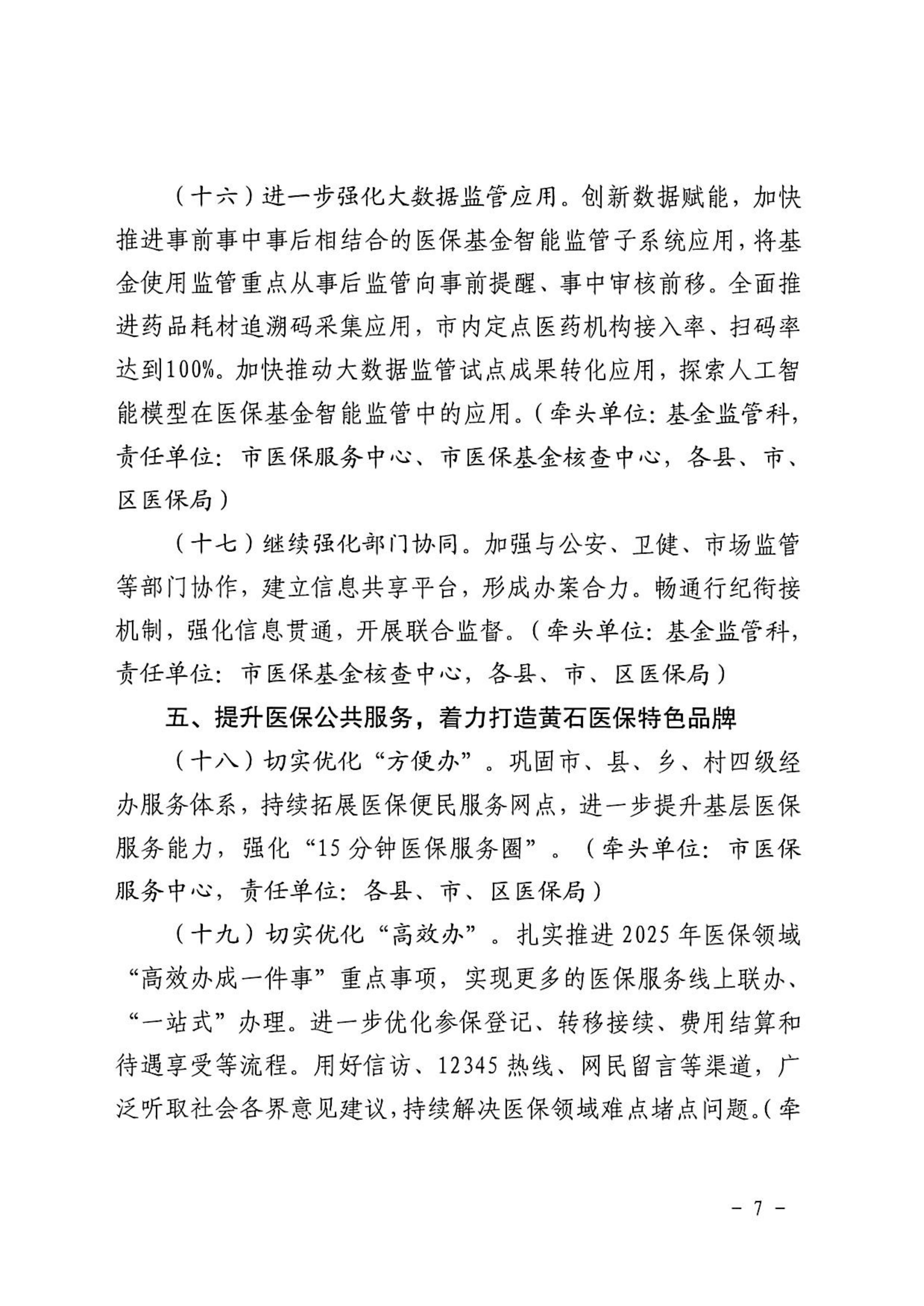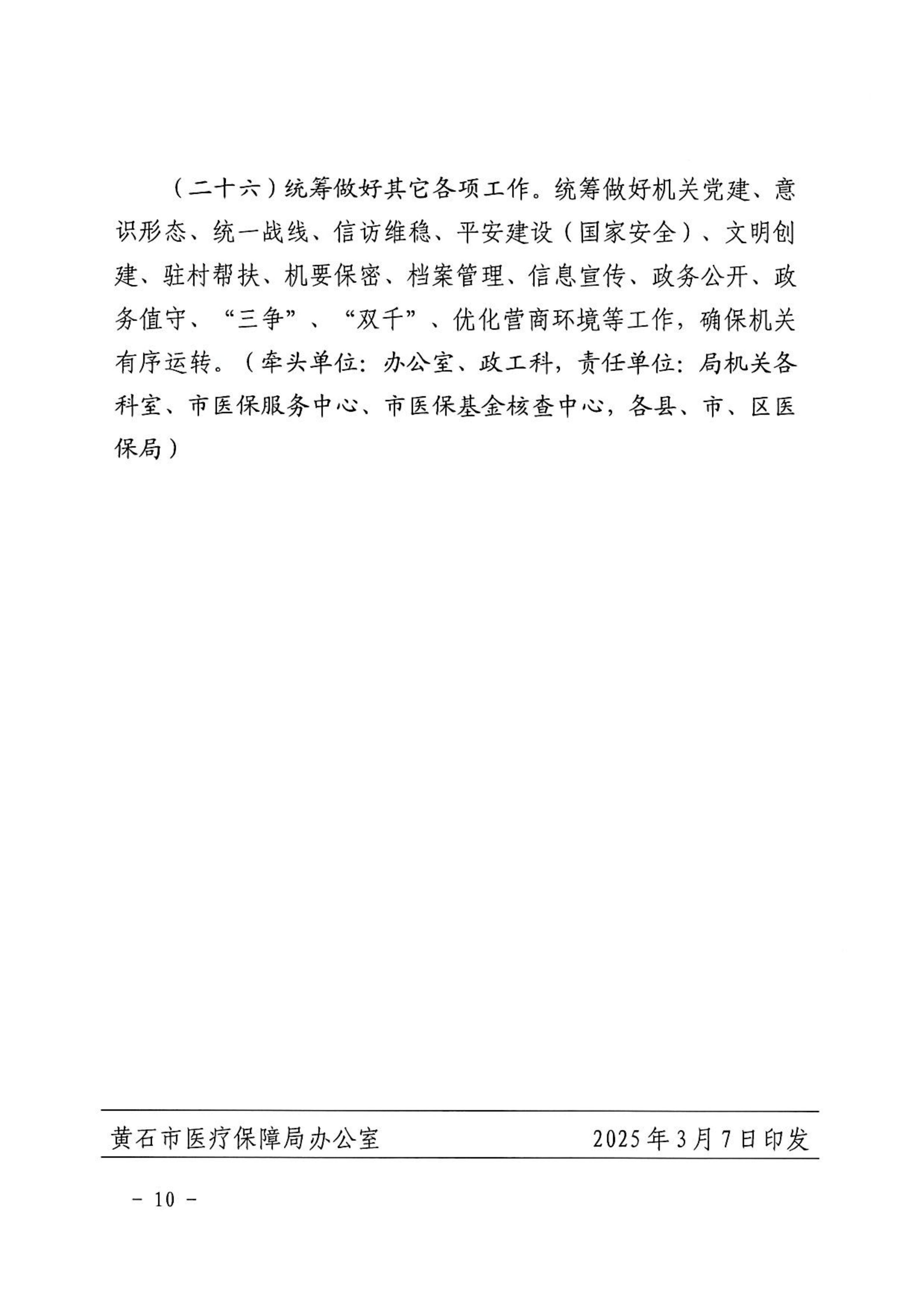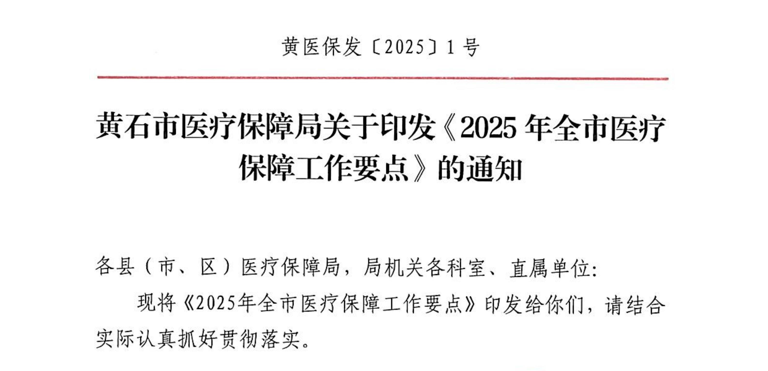 黄石市医疗保障局关于印发《2025年全市医疗保障工作要点》的通知