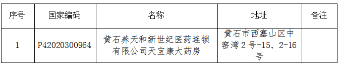 根据《零售药店医疗保障定点管理暂行办法》(国家医疗保障局令第3号)、《湖北省医药机构医疗保障协议管理经办规程》、《湖北省定点零售药店医疗保障服务协议(2025版)》有关规定,经机构自主申请,从2025年11月5日起,中止黄石养天和新世纪医药连锁有限公司天宝康大药房定点零售药店医保服务协议。详情见附件。
