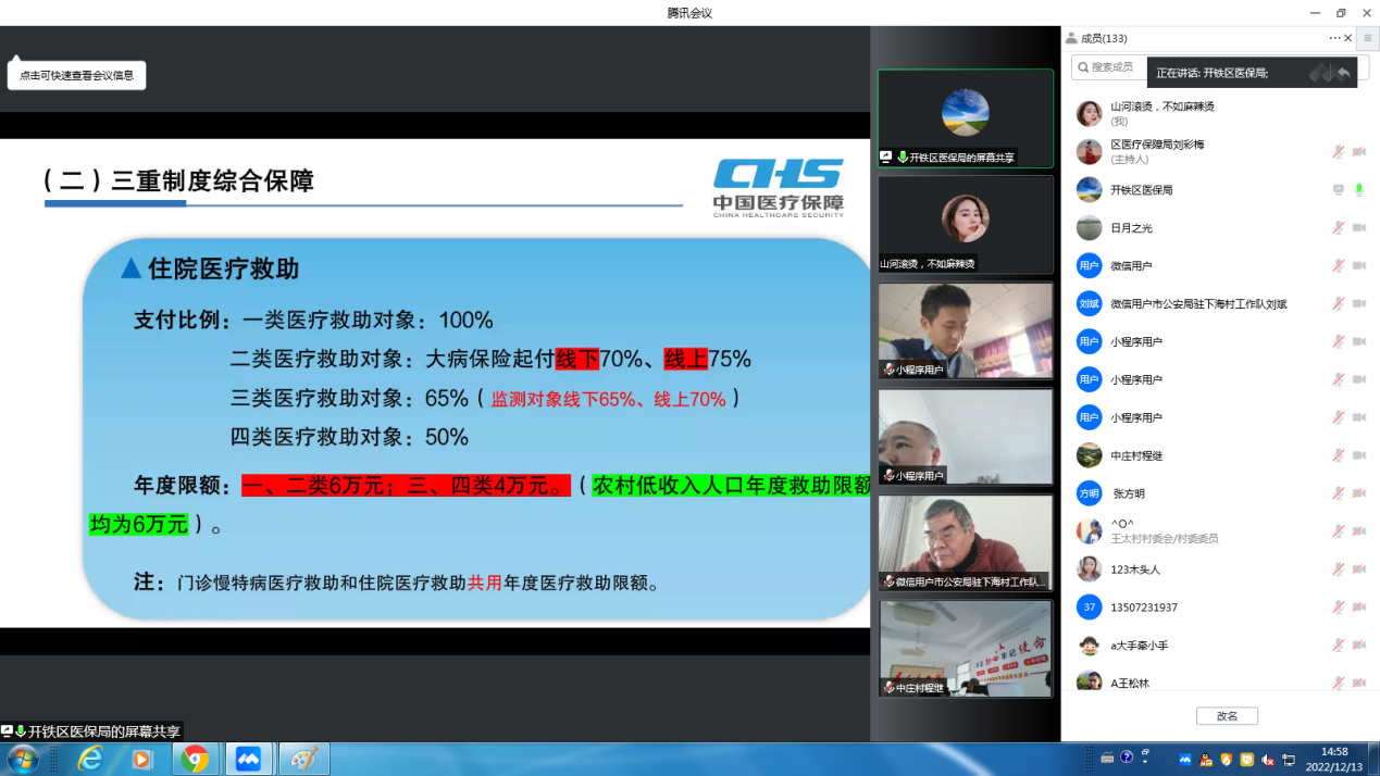 时值新冠疫情高发时节,为避免人群聚集,又不耽误医保政策深入宣传。12月13日,开发区·铁山区医保局通过网上课堂开办医保政策宣传培训班。