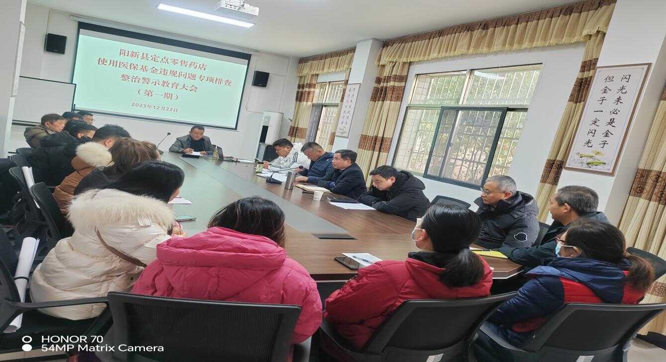 会上,阳新县医保局王鹏浩副局长通报该县定点药店医保违规典型案例,并传达全县关于开展定点药店违规使用医保基金问题专项排查整治工作要求及相关会议精神,部署开展全县定点药店违规使用医保基金问题专项排查整治工作。
